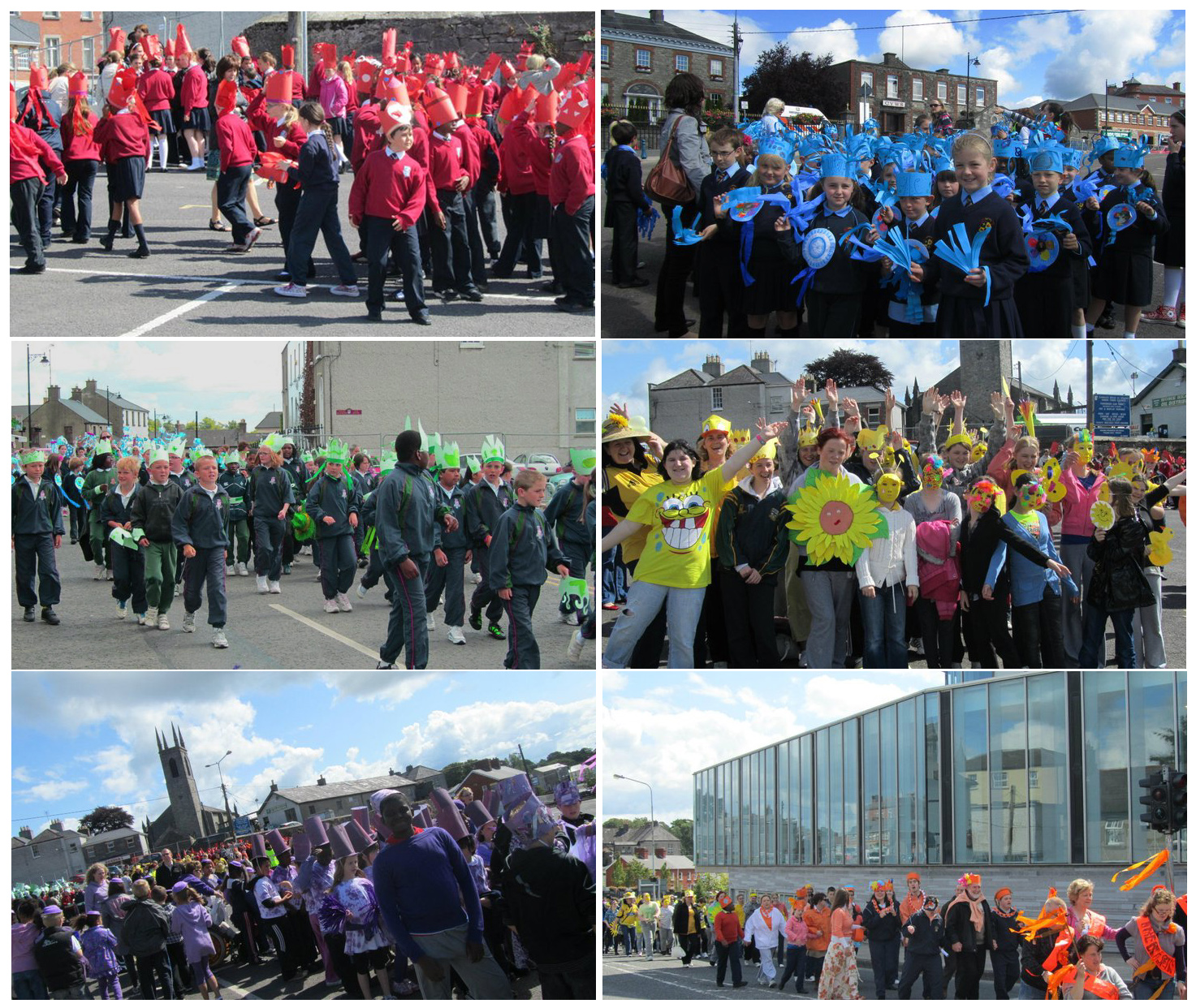 Solstice Festival was a week long event taking place in Navan, Meath and organised by Solstice Arts Centre. Oulala Productions rallied 800 children from Navan schools and adults from various community groups to transform the streets into a long rainbow of music and smiles, following workshops in the classrooms to make head-pieces, props and banners.
